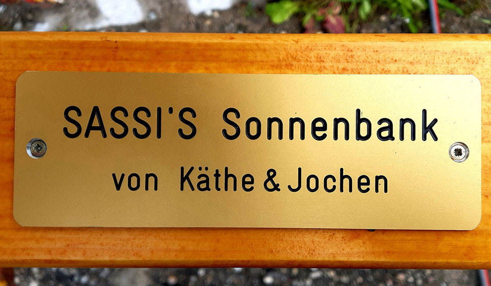 Jede Firma, Organisation oder Privatperson, deren Name auf dem Spendenschild einer Bank zu lesen ist, hat es möglich gemacht, dass Sie auf so einer Bank sitzen können. Dies ist eine sehr schöne Möglichkeit für die Danksagung und die Erwähnung der Sponsorennamen.